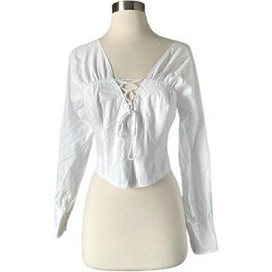 Nicholas Tatum White Poplin Corset Top Long Sleeve Size 2 Lace Up Blouse