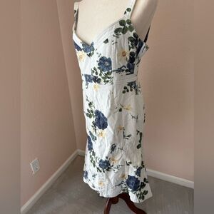 Nicholas white denim rose flare dress. Midi style with front slit sz 10