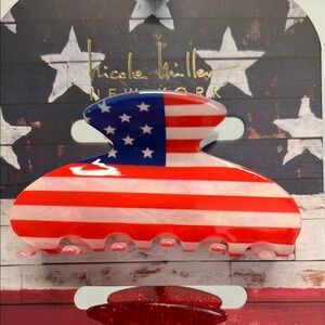 Set of three hair claw clips by Nicole Miller. Features vibrant US flag 🇺🇸 red and blue designs.