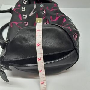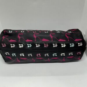Nicole Miller Collection Women's Handbag/Purse Embroidery Black/Pink Shoe Heels and Flowers Handle 11" Please See the Measurements in the Picture Pre-Owned Great Condition