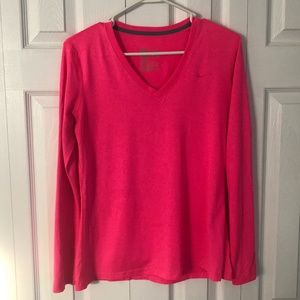 Nike Dri-Fit Dry Fit Neon Pink V Neck Long Sleeve T-Shirt Women’s Medium