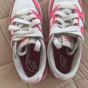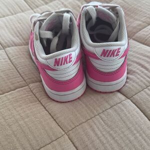 Vibrant Nike sneakers for kids. Pink and white design. Ideal for play and daily wear.