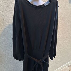 Nikki Lund Size L Long Sleeve Belted Jumpsuit Solid Black Relaxed Fit Minimalist