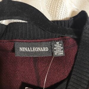Nina Leonard women's Dress/Cardigan in Deep Wine/Black Medium NWT