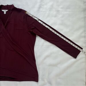 Nine West burgundy wrap top is perfect for any occasion. Its rich color and stylish design make it a versatile addition to your wardrobe.