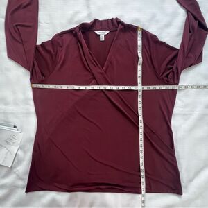Nine West Asymmetrical Wrap Plunge V Neck Long Sleeve Burgundy Blouse SZ 1X