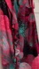 Stylish mini dress with vibrant floral pattern. Features ruffled neckline and sleeveless design. Perfect for a night out.