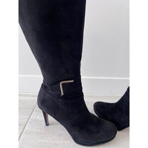 Nine West NWEVAH Size 9.5 M1/2 M Tall Black 3 1/2 Inch Heel Boots with Zipper