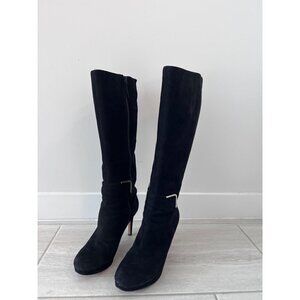Nine West NWEVAH Size 9 1/2 M Tall Black 3 1/2 Inch Heel Boots with Zipper