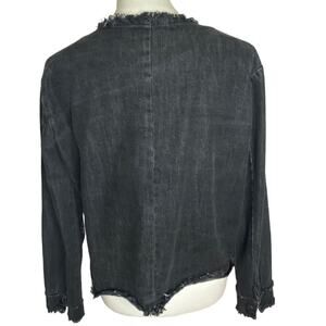 Nixon Asked Cash Black Distressed Denim Jacket with Raw Edge Design