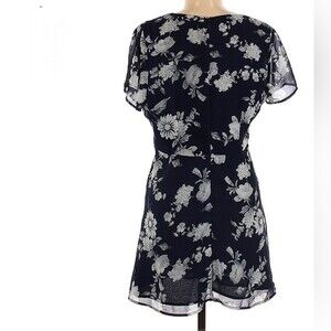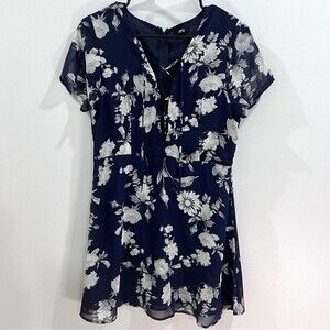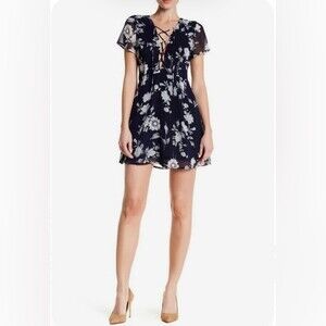 Nordstrom Lucca Couture deep lace up Vneck navy floral dress size medium