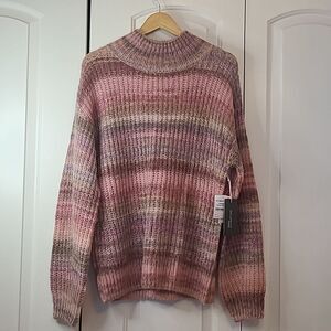 Nordstrom Signature Open Stitch Mock Neck Sweater Rustic Pink Multi Size L & XL