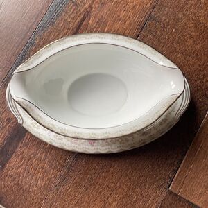 Noritake Edgewood China gravy boat Vintage floral rose platinum trim attached un