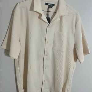 NovaMen Show Up Short Sleeve Cuban Shirt Size Large Cream New With Tags
