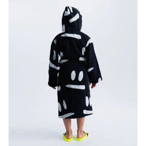 Description from retailer: what’s summer without all the necessities for making mischief & chilling out too. that’s why we popped our smirk print all over this black robe for boys & girls. it’s made of soft & absorbent terrycloth, perfect for throwing on over wet swimsuits during beach, lake, and pool days. or, after water balloon fights. because we know that's more your kid’s speed anyway.