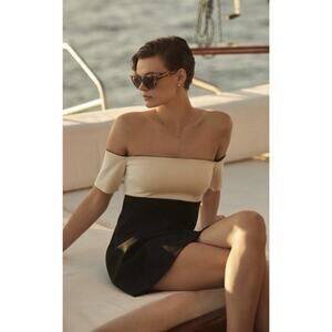 Nwt Anthropologie Maeve Colorblock Knit Mini Party Cocktail Dress Medium Petite Black and Cream White with Pockets! The dress has a nice stretch! It has pockets on the sides, and the inside chest area has a silicone gripping strip to help keep the dress in place.