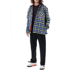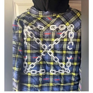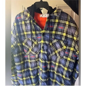 OFF-WHITE NEW Off-white Chain Arrow Check Flannel Hooded Overshirt medium coat