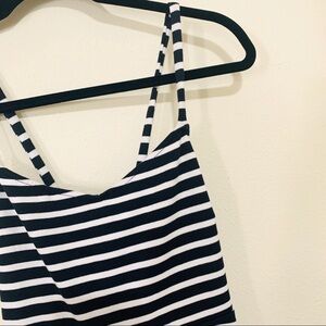 Old Navy women's casual striped dress with adjustable shoulder straps, smoked back, and empire waist. Great for any occasion. Beautiful comfy black and white stripe summer dress