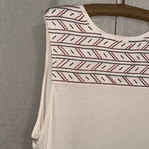 ON L Ivory Red Burgundy Navy Embroidered Sleeveless Scoop High Low Tank Top