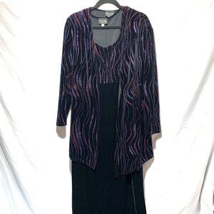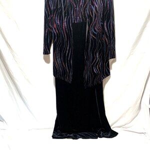ONYX NITE Long Dress & Jacket by Wendy Chaitin Purple Pink Sparkly On Black VTG