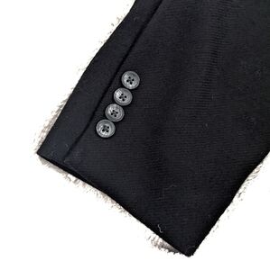 100% wool, black blazer from Oscar de la Renta. Size 46L. Single breasted. Shoulder pads sewn in. Features 4 buttons on the sleeve.