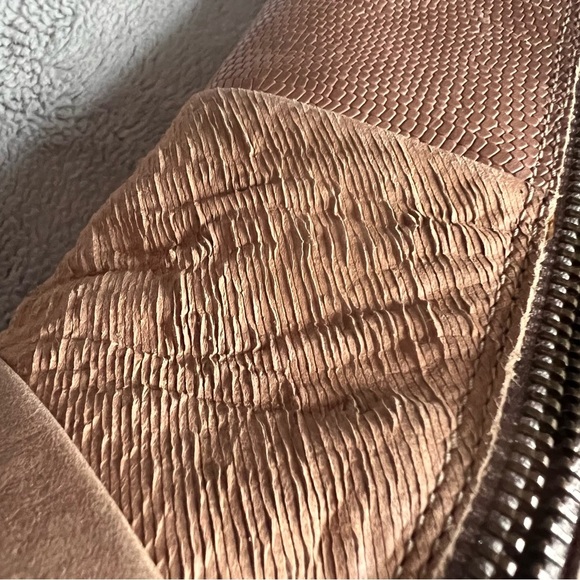 Good used condition. Dharma Wedge Bootie by OTBT in Pecan, a tan, light brown and cream shade. Retro 70s bohemian aesthetic, a versatile style that can be dressed up or worn casually. Leather ankle boot with stacked wedge heel and round toe. Pieced leather upper with reptile embossing, textured grain and smooth leather patchwork design and wood-like heel, see video. Camo-printed fabric lining, see video. Note: light wear throughout, with streetwear to bottom sole, minor piling at lining and moderate scuffing to upper, see photos. Size 9.5, see photos for measurements.