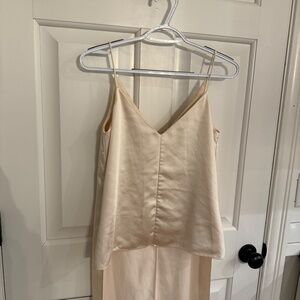This high-low satin tank by Obando Collective brings instant glamour to your OOTD.