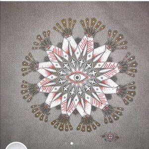 Crewneck has a cool design. The sweater looks faded but that's how it is supposed to be styled