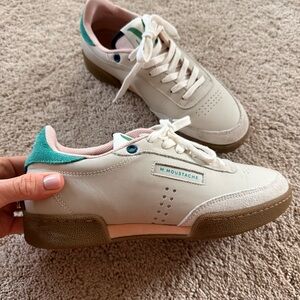 Old School Cool. Details of color to highlight a vintage inspiration design: it is Anatole in ecru leather turquoise salmon. A low minimalist men's basketball but recognizable among all thanks to its inter -color sole in colorful microphone. A pair of sneakers that brings the little twist. Even the brut/white t-shirt combo is no longer the same with Anatole on the feet.