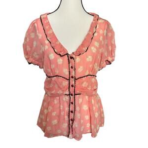 Odille Silk Pink Floral Ruffle Button Blouse Womens Medium Romantic Y2K Anthro