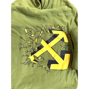Off-White Hoodie Sweatshirt Mens LG Green Cracked Arrows Graphic Streetwear NEW