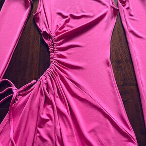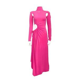 $1490 Authentic Off-White Vi-crepe See Thru Midi Dress in Fuchia IT 38, US 4. EXCELLENT CONDITION- WORN ONES.