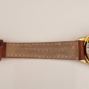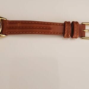 This Ohio State women's watch is the perfect accessory when you are cheering O H I O!  The brown leather band is 1/2 inch wide and shows wear on the inside and some cracking where it's attached to the watch (please see pics).  Watch is gold tone and in very good condition with very few signs of wear and a scratch-free crystal. Currently running with a fresh battery.