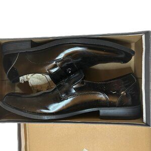 Embody timeless sophistication with these Stacy Adams Eldon Moc Toe Slip-On Loafers, crafted from premium black leather and finished with a sleek gunmetal bit detail for a polished, refined look.