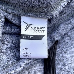 Heathered gray mock neck sweater from the Old Navy Active Holiday 2017 collection. Features a high cowl like mock neck with drawstring, Thumbholes in cuffs and front drop pockets. Go-Dry helps to wick away sweat keeping you dry.