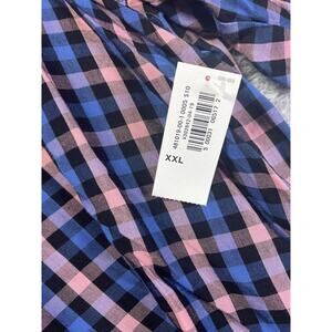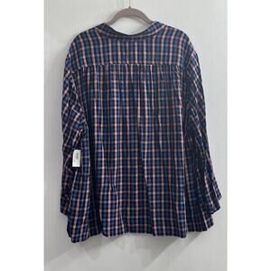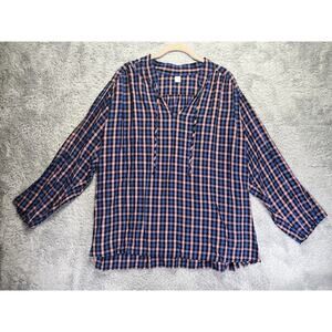Old Navy Blouse Women XXL 2XL Blue Pink Plaid Long Sleeve Tunic V Neck Peasant