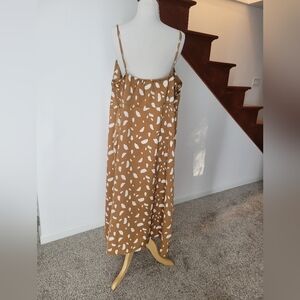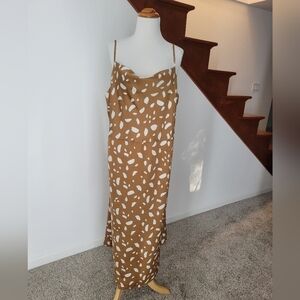Old Navy Brown Cream Print Cowl Neck Satin Midi Slip Dress Size 2X