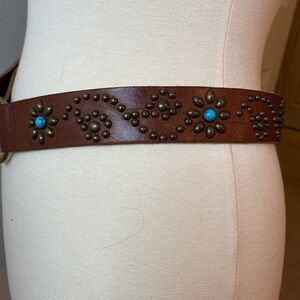 Old Navy Brown Leather Turquoise Studded Belt in EUC