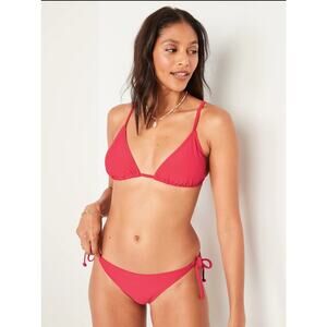 Matching bikini bottoms have adjustable string ties at hips, with comfortable elastic at waist and leg openings.