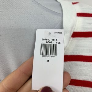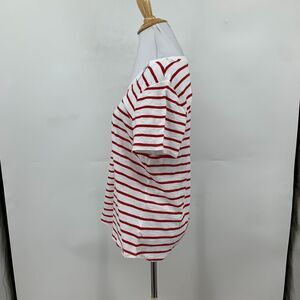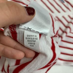 Old Navy Slub Shirt Womens M Medium White Red Candy Cane Short Sleeve V Neck Tee