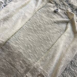Size XS/S from Old Navy. White drapey & flowy white knit cardigan sweater. Striped pattern. Fringe at the bottom. 71% cotton, 29% acrylic. Minor wear, overall good condition. Bohemian.