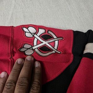 Old Time Hockey #2 Keith Chicago Blackhawks Sweatshirt Hoodie M Skeleton Skull flawed has small holes on the back right shoulder sold as is see pictures for reference and measurements