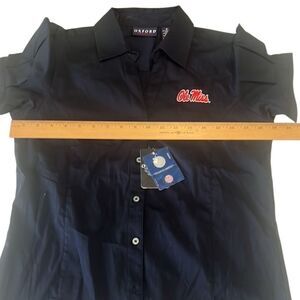 Ole Miss Navy Button Up Short Sleeves Cotton Blouse Women's Size Medium NWT