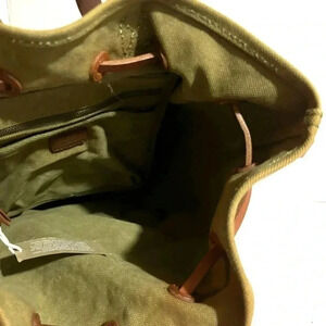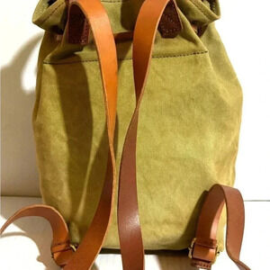 Stylish olive green canvas backpack with leather accents. Perfect for everyday use.In BRAND NEW CONDITION
