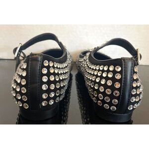 Olomisa Black Rhinestones Ballet Flats for Women Shoes SZ 9 Mary Jane Flats. Front Strap Inside Lined Manmade Outsole. Note: 1 stone missing on outer left shoes. Beautiful Condition.