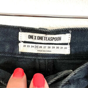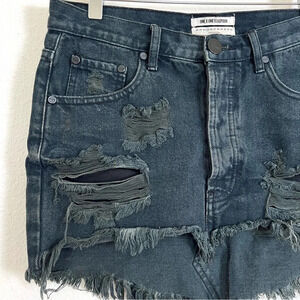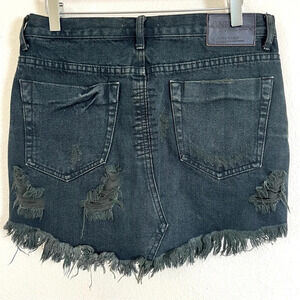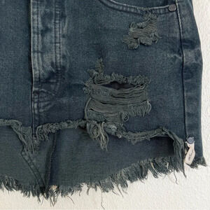 One Teaspoon Black Denim Junkyard Destroyed Mini Skirt Size 25