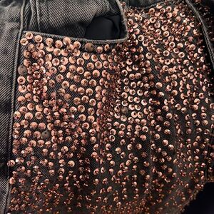 One Teaspoon Hand Embellished Love Machine Jeans Size 27 | Wide Leg Dark Wash Sequin Studded Denim