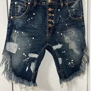 One Teaspoon Revolve Distressed Frayed Hem Blue Jean Shorts,Button fronts closure.Splatter paint details. Approx measurement Waist 29", Rise 9.5", Inseam 8.5", Length 12.5"-16".NWT