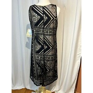 One World NWT Hi-Low Dress Aztec Print Large Black & Tan 2 Layer Print Women NEW