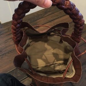 Barley used one of a kind Nancy Gonzalez cognac hobo handbag. Intricate handle, very neutral color, goes with everything!